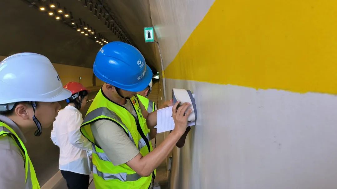 本次質(zhì)量抽檢嚴(yán)格執(zhí)行省交通運(yùn)輸廳關(guān)于推進(jìn)實(shí)施公路隧道洞壁亮化的有關(guān)標(biāo)準(zhǔn)要求,重點(diǎn)對粘結(jié)力、漫反射率、涂裝層厚度等三項(xiàng)指標(biāo)進(jìn)行實(shí)體抽檢。專業(yè)化的檢測人員和設(shè)備為此次質(zhì)量抽檢工作提供技術(shù)支持和指導(dǎo),抽檢工作順利完成。