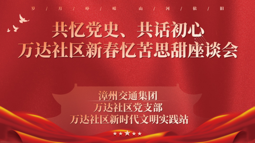 在新春佳節(jié)來臨之際,2月1日上午,漳州交通集團黨群工作部、黨委宣傳部、團委組織人員到碧湖街道萬達社區(qū)新時代文明實踐站,與共建單位萬達社區(qū)黨支部聯(lián)合開展“共憶黨史,共話初心”新春座談會。社區(qū)退休老黨員代表,社區(qū)、物業(yè)單位工作人員參加了座談。