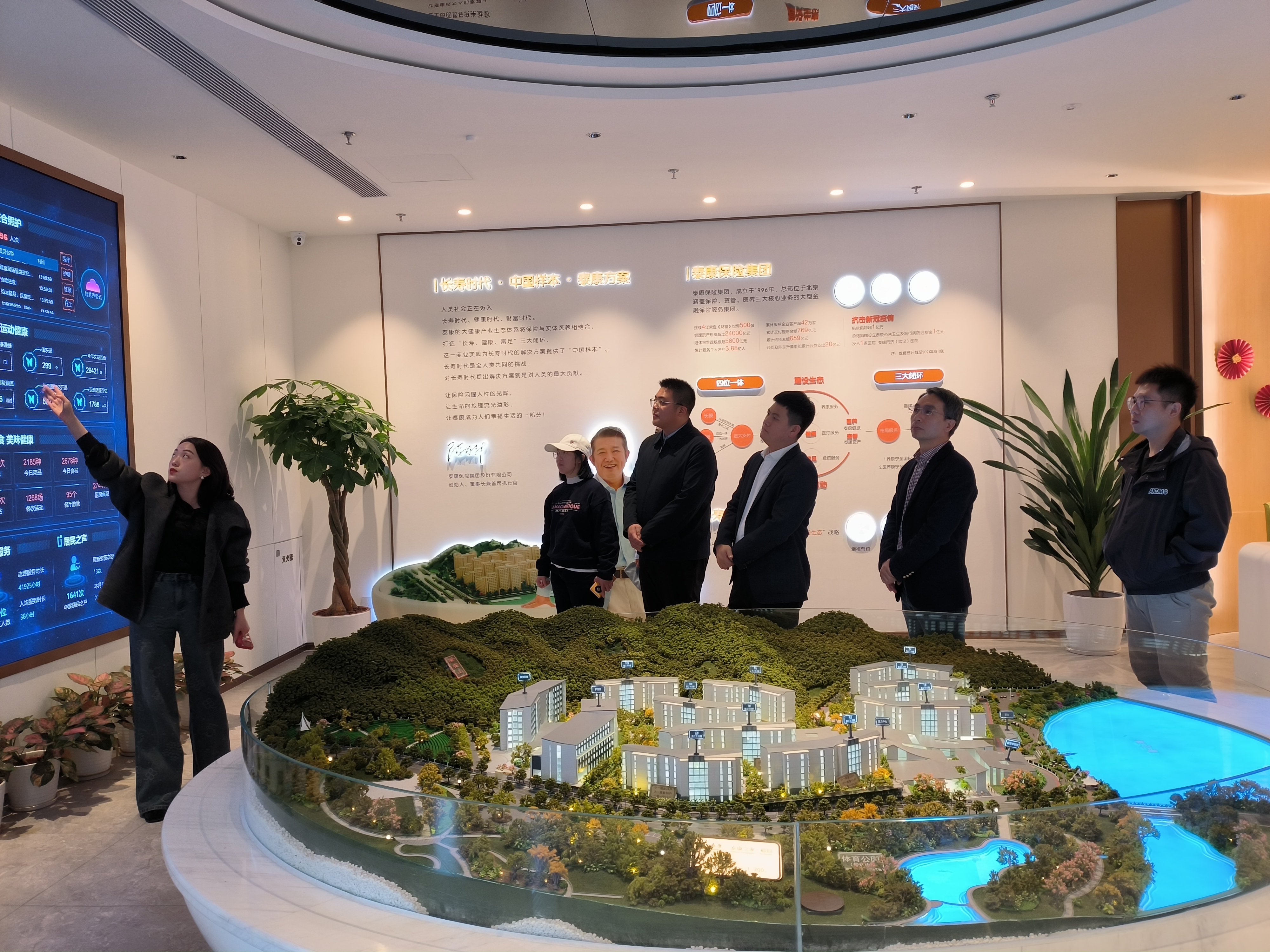 考察組一行與福建龍睿投資有限公司董事長林俊鵬、副總經(jīng)理徐淵和一同參觀了福園體驗館,對泰康養(yǎng)老的經(jīng)營理念、管理模式做了詳細了解。