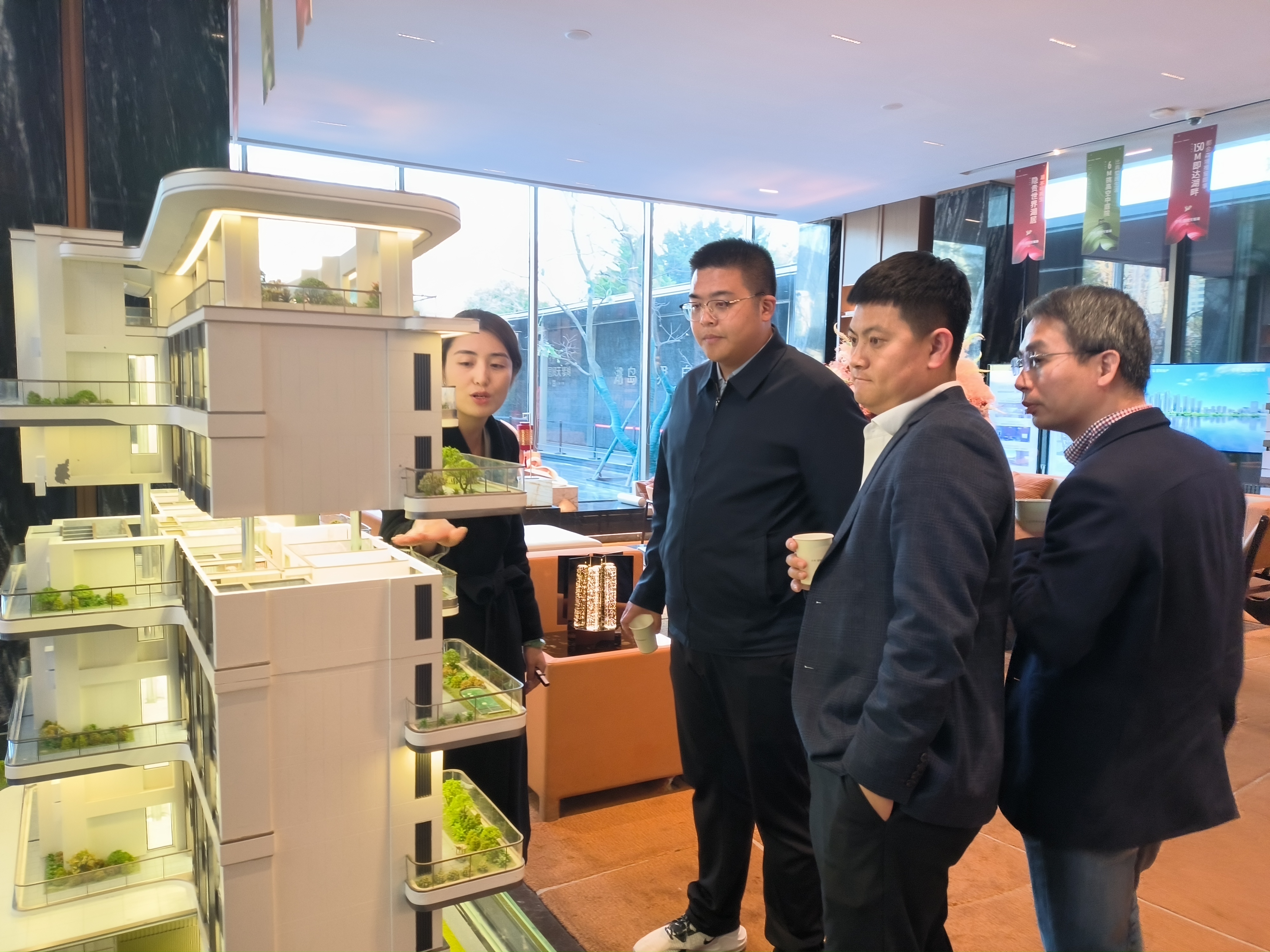 考察組進一步學習了第四代城市森林花園住宅的建筑設(shè)計理念,對市場需求、政策支持、小區(qū)總體規(guī)劃、室外景觀,特別是對花園庭院部分的容積率計算、戶型設(shè)計、植被栽種等方面進行了詳細了解。