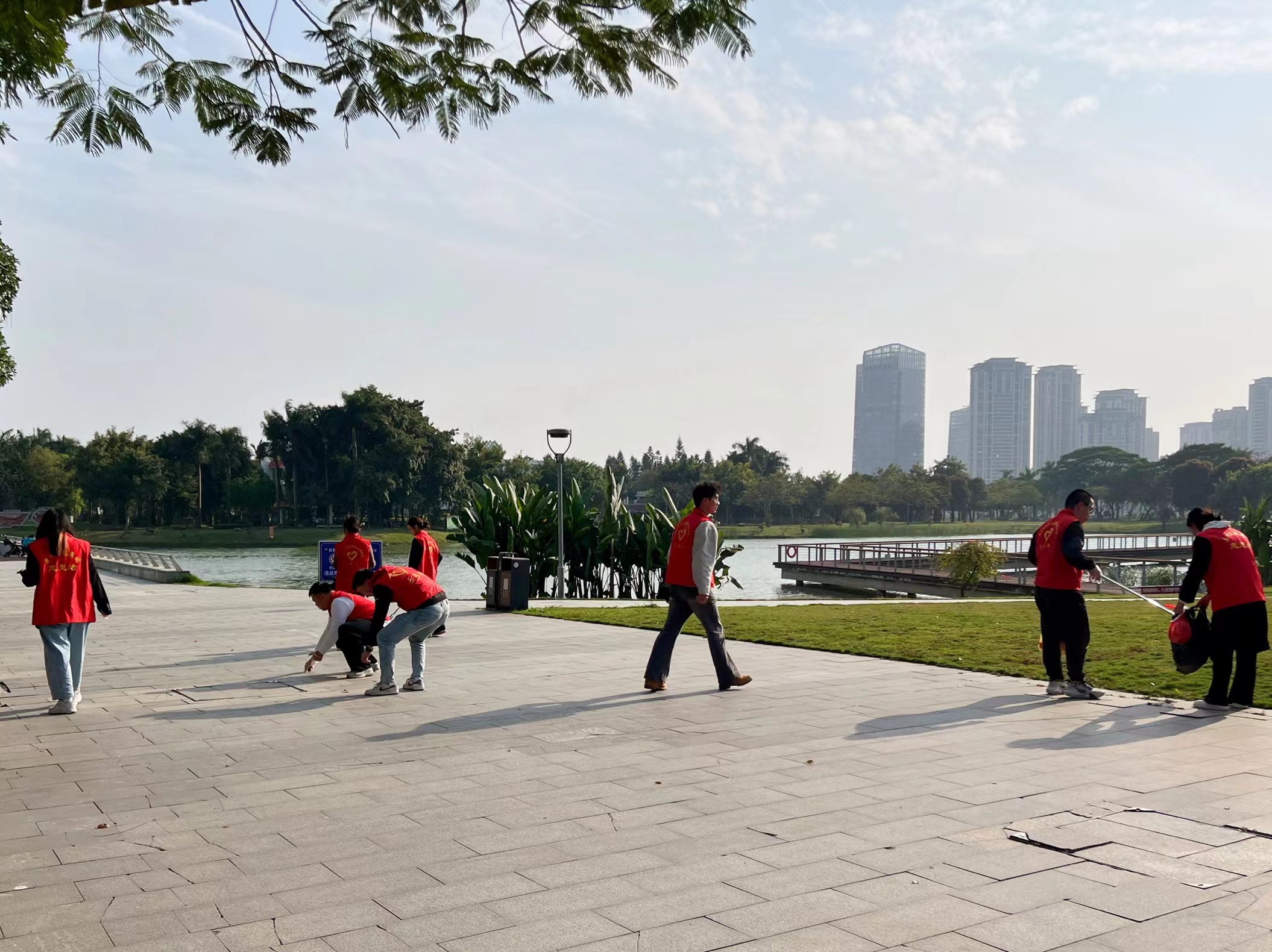 第二組團員青年深入公園內部,撿拾路邊、綠化帶、草叢中等場地的垃圾,把搜集到的各類垃圾嚴格分類裝袋;對占綠、占盲、倒伏的非機動車輛進行搬扶整理;對發(fā)現(xiàn)的共享單車非法小廣告進行清理,為共創(chuàng)干凈、整潔、舒適的生活環(huán)境獻出自己的一份力,增強大家環(huán)境保護意識的同時又傳遞了勞動光榮的精神。