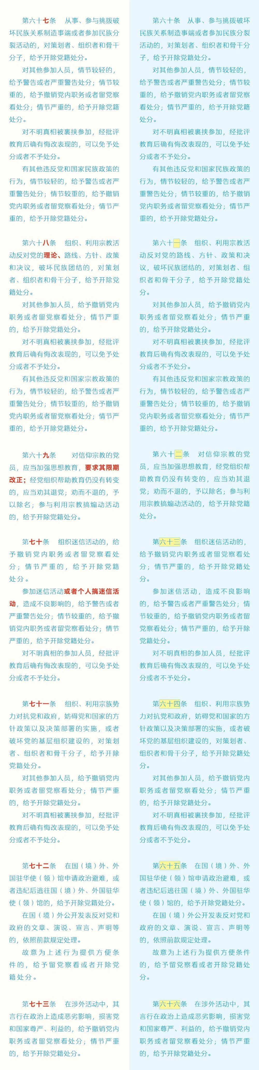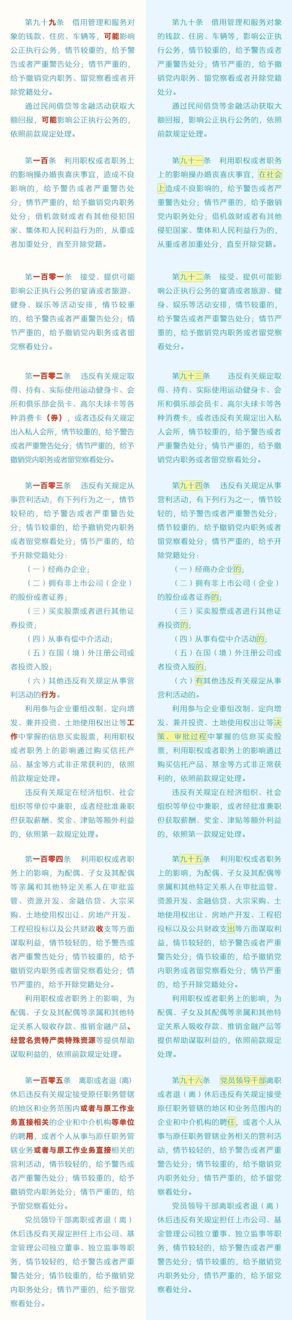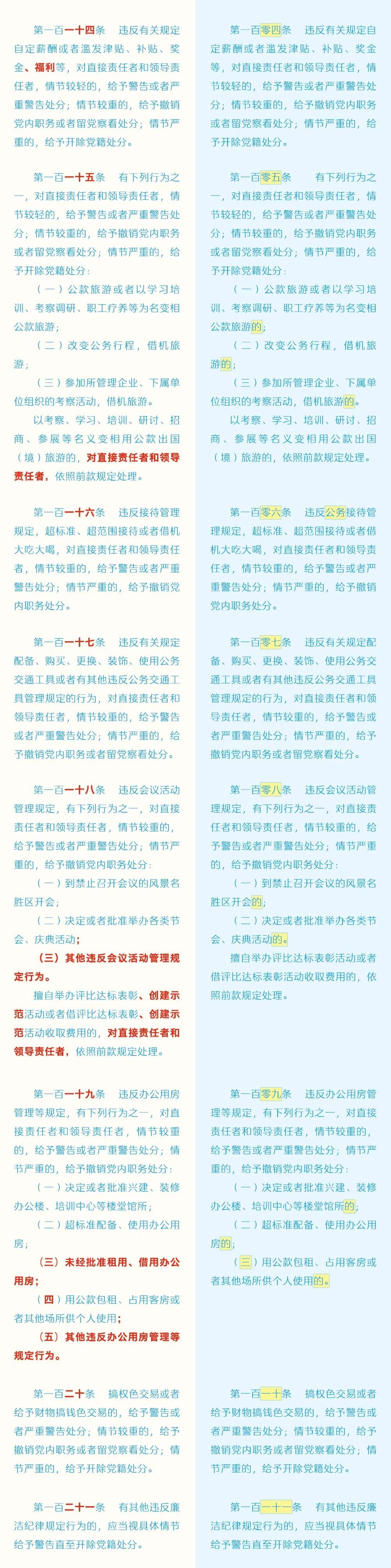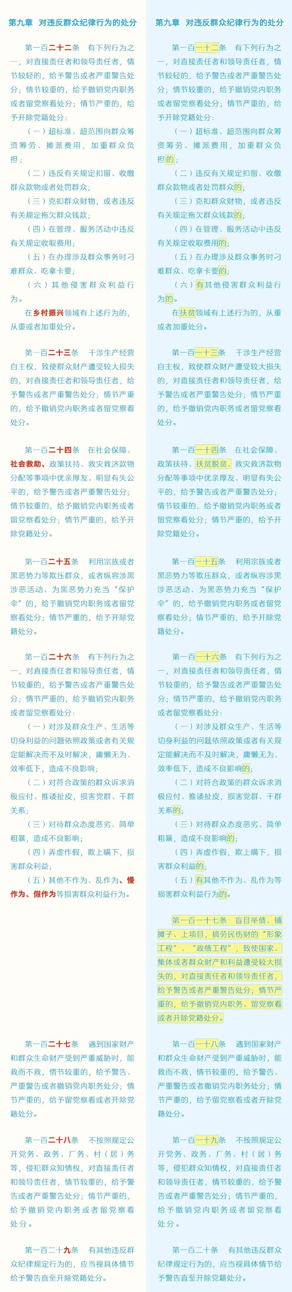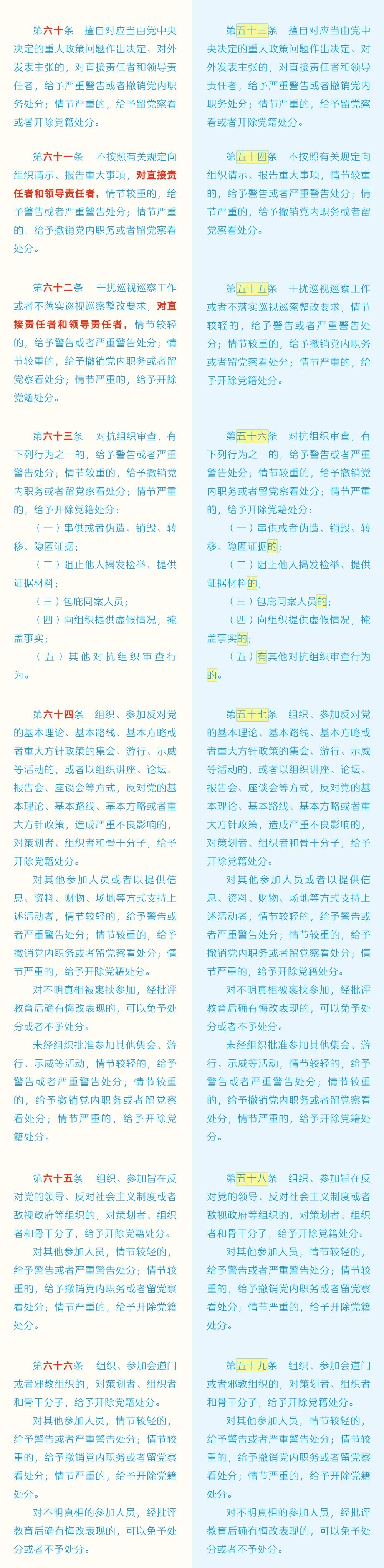 黨紀(jì)學(xué)習(xí)教育 | 《中國共產(chǎn)黨紀(jì)律處分條例》修訂條文對照表