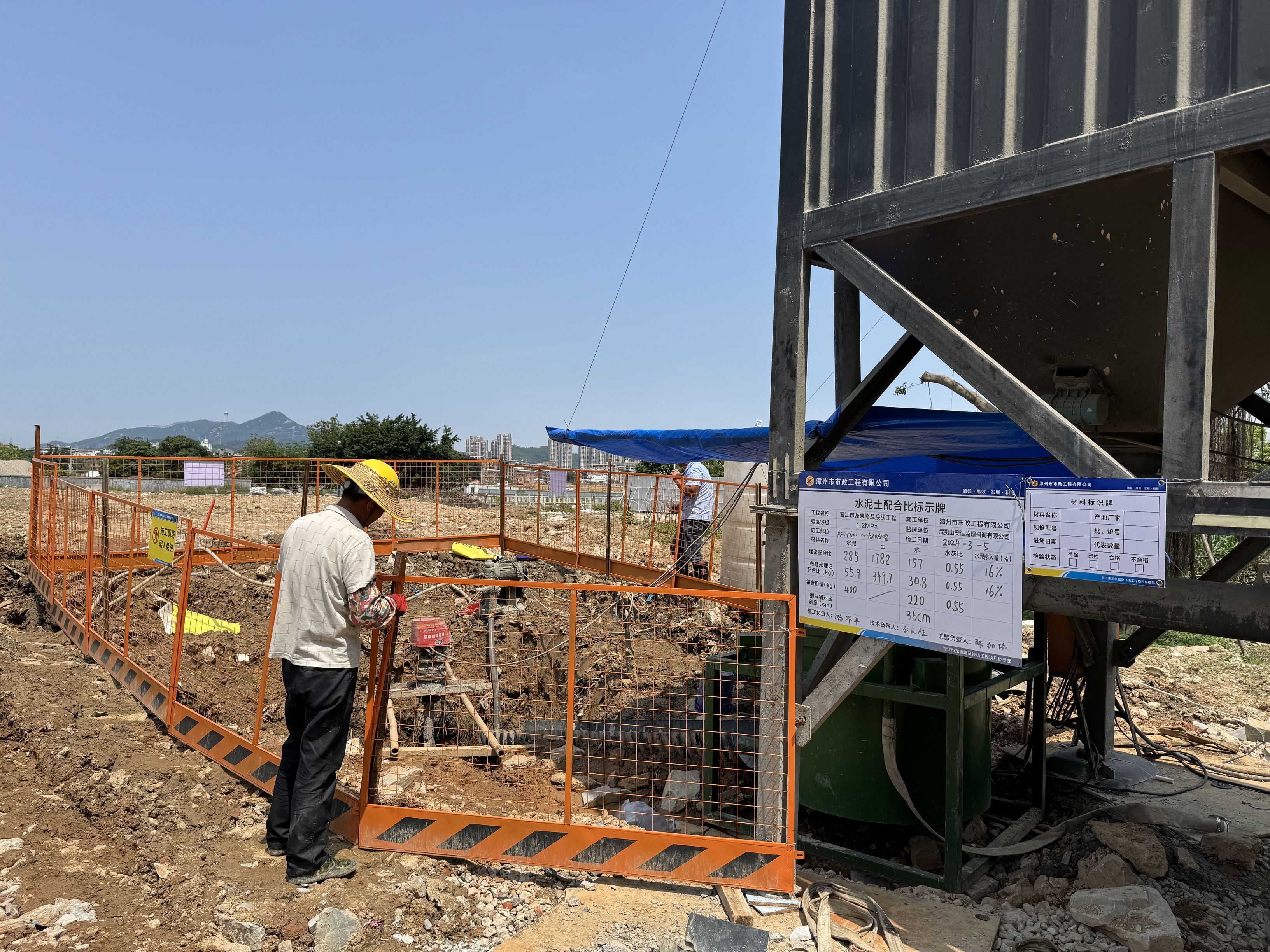 在工程施工現(xiàn)場,機(jī)器轟鳴聲不絕于耳,各類工程機(jī)械正在對(duì)原地面進(jìn)行清表,清運(yùn)廢棄土方,移植場地內(nèi)樹木,為水泥攪拌樁施工提供必要的場地。目前,項(xiàng)目已完成水泥攪拌樁試驗(yàn)樁檢測,效果良好,將為后期生產(chǎn)提供主要控制目標(biāo),確保項(xiàng)目工期。