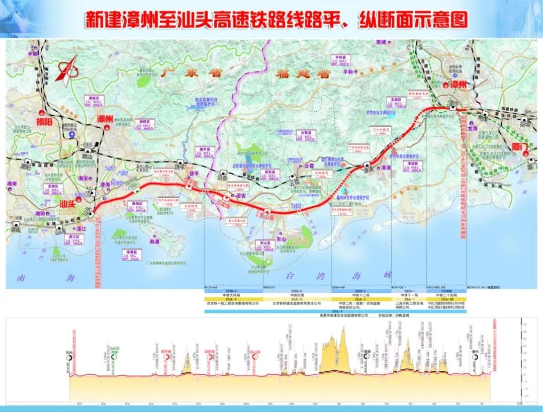 漳汕高鐵項目北接福廈高鐵,南連汕汕高鐵,全長約175公里(福建段全部在漳州市境內(nèi),長約127.2公里),共設(shè)漳州、漳浦、東山縣、詔安南、饒平南、汕頭東、汕頭等7座車站(漳州、漳浦、汕頭為既有站,汕頭東為預(yù)留站,其余為新建站),設(shè)計時速350公里,計劃工期4.5年。