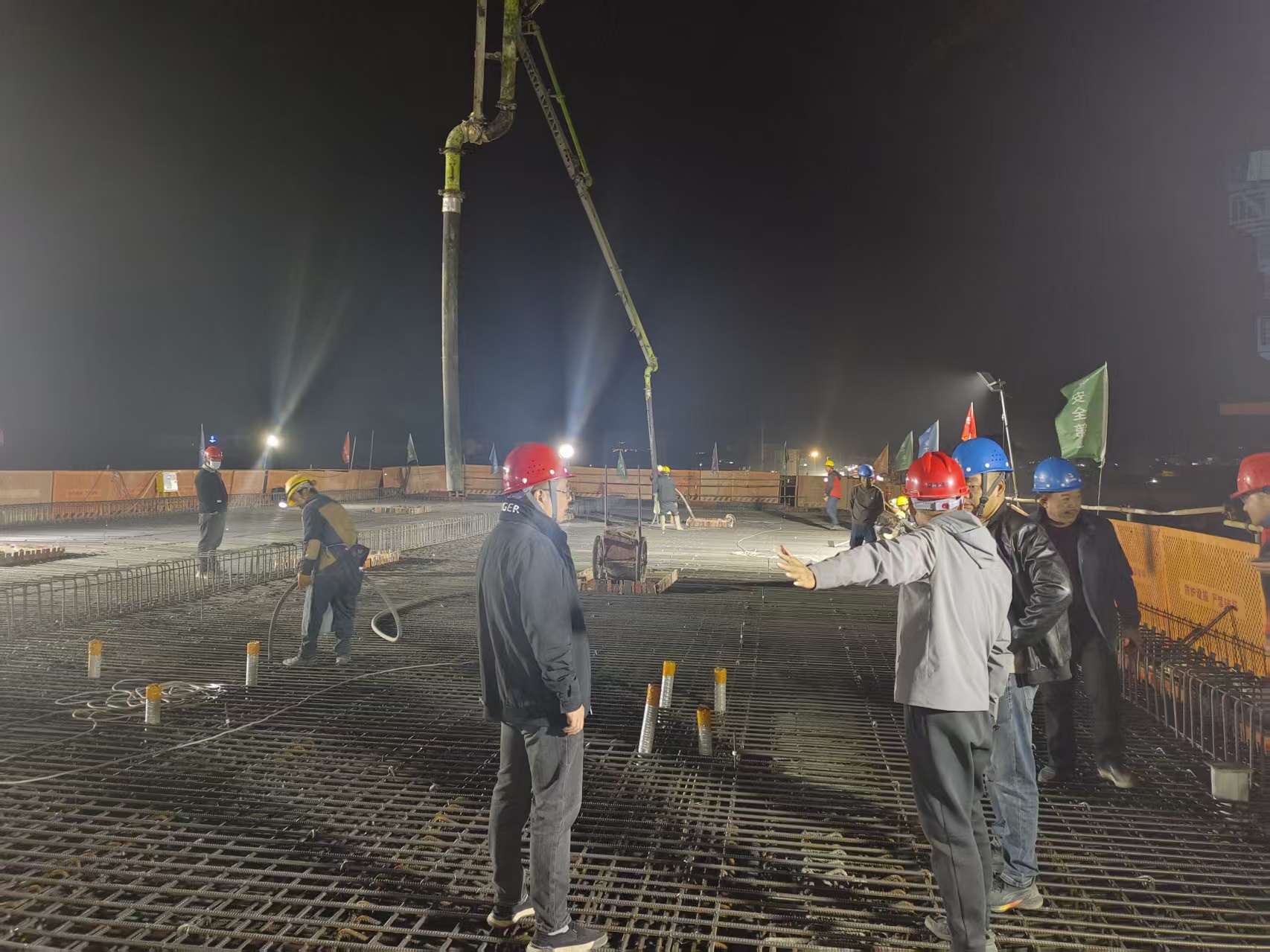 田墘高架橋全長(zhǎng)513米,寬19.5米。本次澆筑的箱梁具有跨度大、技術(shù)復(fù)雜、安全風(fēng)險(xiǎn)高等特點(diǎn)。項(xiàng)目(臨時(shí))黨支部充分發(fā)揮黨建引領(lǐng)作用,通過(guò)召開專題攻堅(jiān)會(huì)、細(xì)化施工方案,推動(dòng)黨建與施工深度融合。澆筑過(guò)程中,黨員骨干帶頭堅(jiān)守一線,克服連續(xù)作業(yè)與夜間施工困難,嚴(yán)格把控質(zhì)量安全,保障任務(wù)圓滿完成。